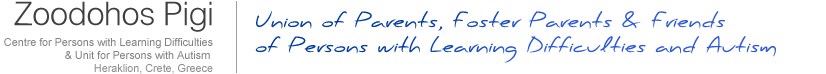 In 1988, parents from the community of Heraklion, Crete found the "Union Of Parents, Foster Parents and Friends of Persons with Learning Difficulties". In 1991, the Union begin to operate the "Centre For Persons With Learning Difficulties - Zoodohos Pigi" in a 300 sq.m. building, rendered by the Greek Telecom, in Nea Alikarnassos, Heraklion.